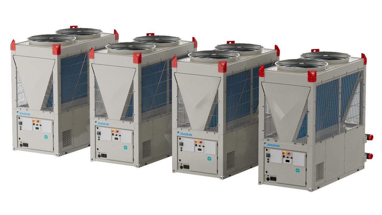Daikin EWYK-QZ je modulárne invertorové tepelné čerpadlo vzduch-voda využívajúce chladivo R-290, navrhnuté tak, aby bolo možné škálovať od jedného modulu s výkonom 135 kW až po 2000 kW v rámci viacerých zostáv.