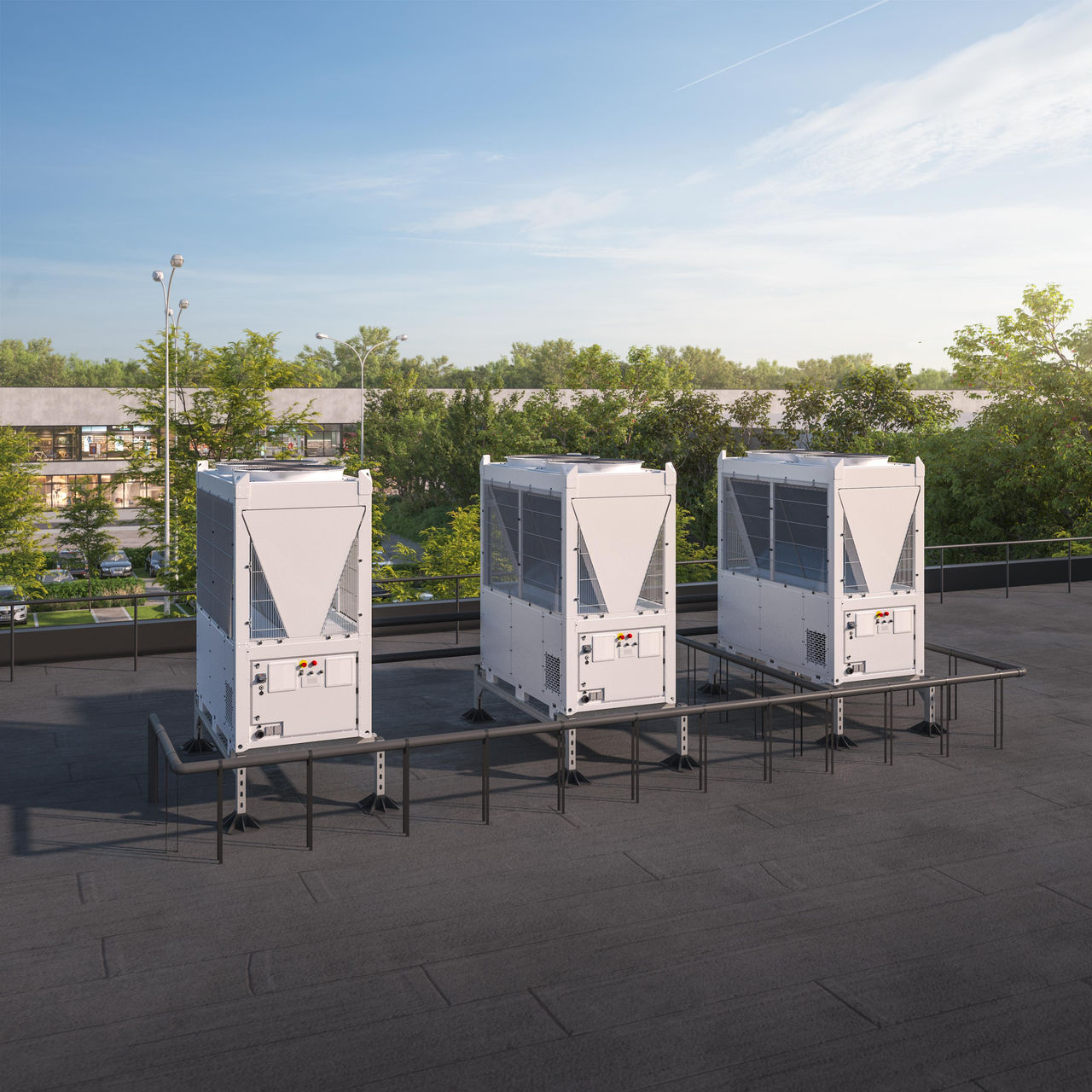 Špirálové kompresory VFD a invertorovo poháňané ventilátory s voľným obežným kolesom EC sa v reálnom čase prispôsobujú zmenám zaťaženia, čím zabezpečujú vynikajúcu účinnosť pri čiastočnom zaťažení vo všetkých ročných obdobiach.